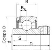 - Подшипники шариковые радиальные однорядные с двумя уплотнениями с широким внутренним кольцом сферической наружной поверхностью наружного кольца с установочным винтом во внутреннем кольце