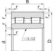 - Подшипники роликовые радиальные двухрядные с короткими цилиндрическими роликами с цилиндрическим отверстием внутреннего кольца с бортами на наружном кольце