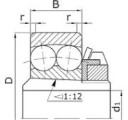 - Подшипники шариковые радиальные однорядные с двумя уплотнениями с широким внутренним кольцом сферической наружной поверхностью наружного кольца с концентричным стопорным кольцом