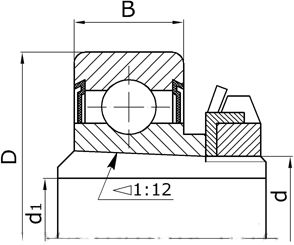 - Подшипники шариковые радиальные однорядные с двумя уплотнениями (защитными шайбами) с широким внутренним кольцом сферической наружной поверхностью наружного кольца на закрепительной втулке