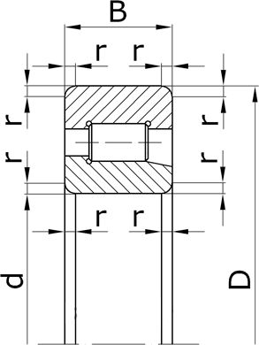 - Подшипники роликовые радиальные двухрядные с короткими цилиндрическими роликами с цилиндрическим отверстием внутреннего кольца с бортами на наружном кольце