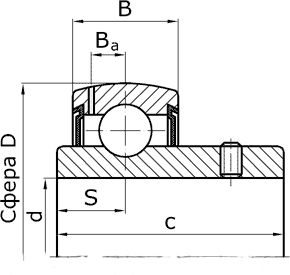 - Подшипники шариковые радиальные однорядные с двумя уплотнениями с широким внутренним кольцом сферической наружной поверхностью наружного кольца с установочным винтом во внутреннем кольце