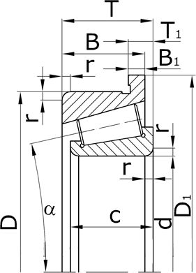 - Подшипники роликовые конические однорядные повышенной грузоподъемности с упорным бортом на наружном кольце