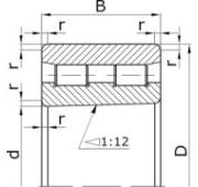 - Подшипники роликовые радиальные двухрядные с короткими цилиндрическими роликами с цилиндрическим отверстием внутреннего кольца с бортами на наружном кольце